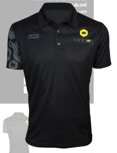 Polo manches courtes sublimé en matière COOLMAX, col V et 3 boutons, permettant l'élaboration de n'importe quel design dessus.